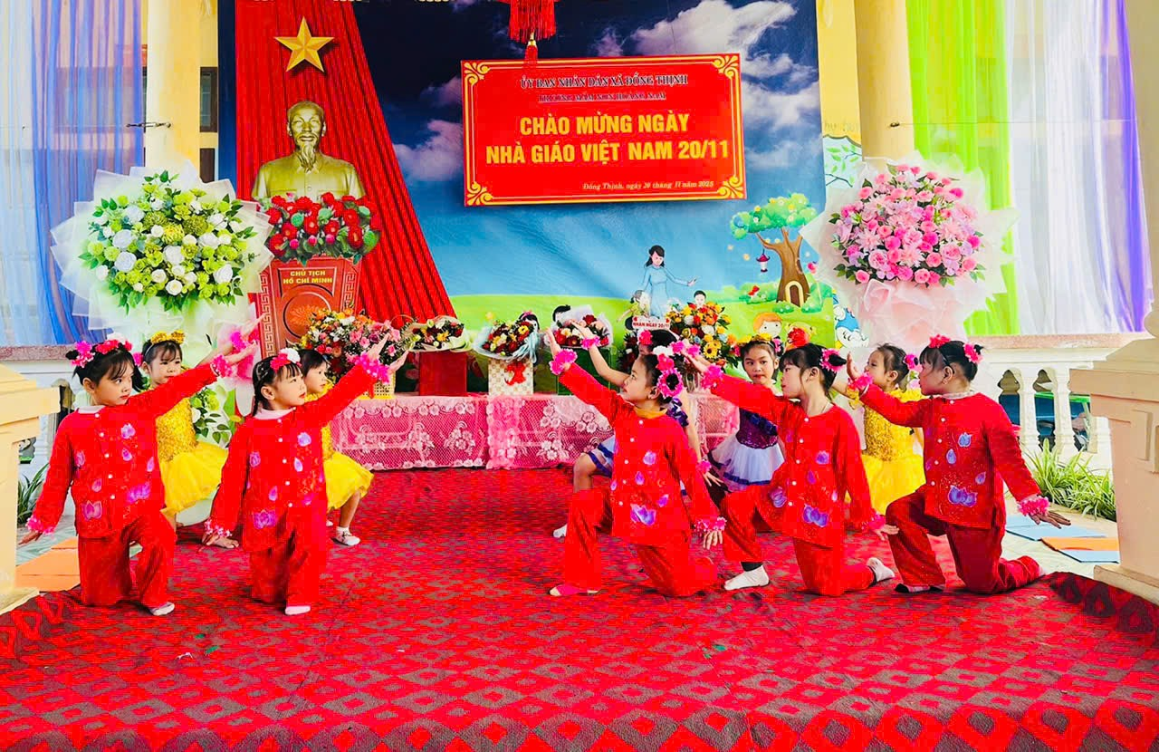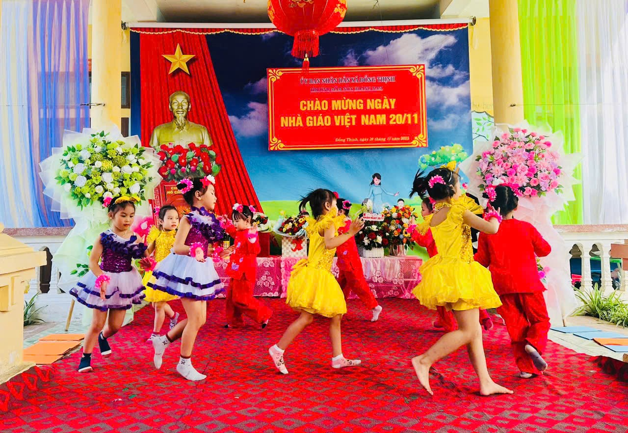 Các tiết mục văn nghệ được tổ chức sôi nổi với những bài hát về thầy cô, mái trường và bạn bè. Những giai điệu rộn ràng, tiếng hát trong trẻo và những điệu múa đáng yêu của các bé đã mang đến một không gian ấm áp, giàu cảm xúc. Mỗi tiết mục đều thể hiện sự nỗ lực, tinh thần mạnh dạn và niềm vui của trẻ khi được đứng trên sân khấu, đồng thời là món quà tinh thần đầy ý nghĩa gửi tặng các cô giáo nhân ngày đặc biệt này.