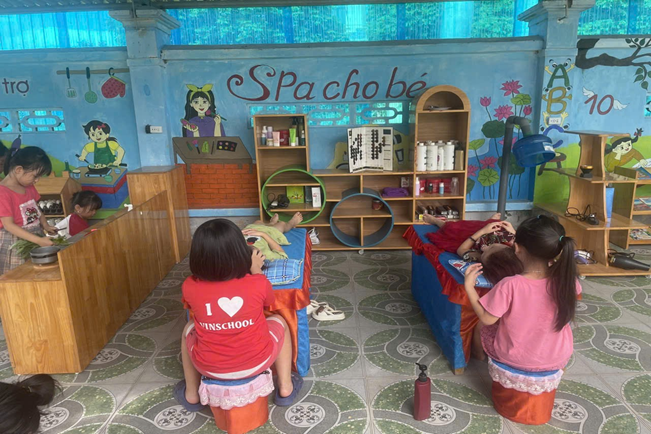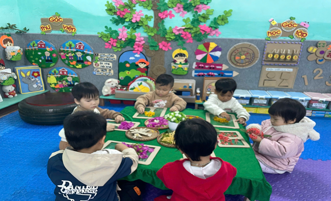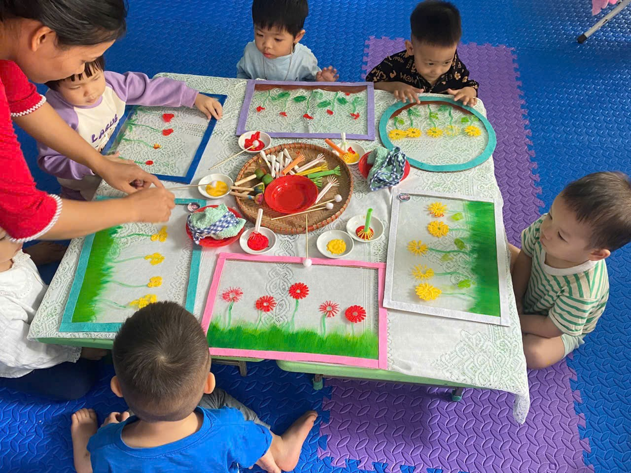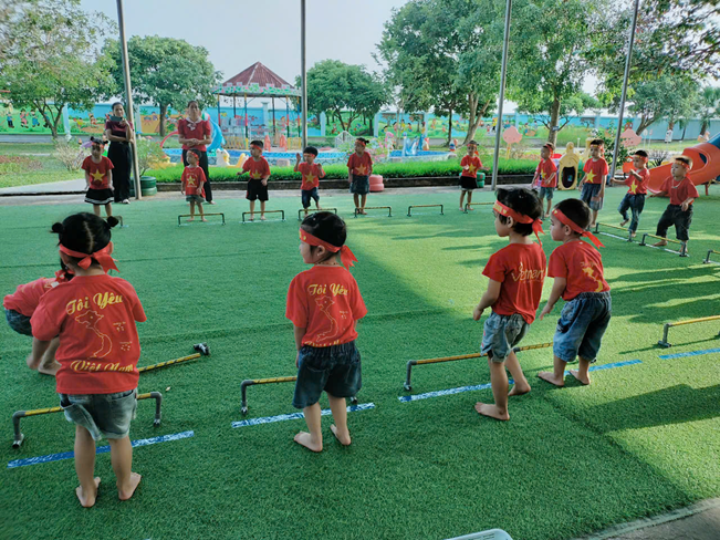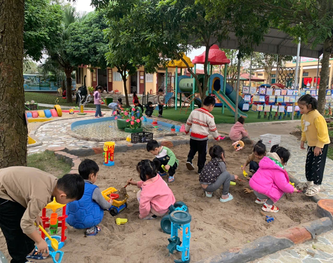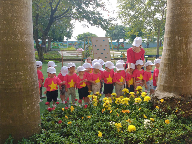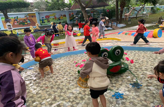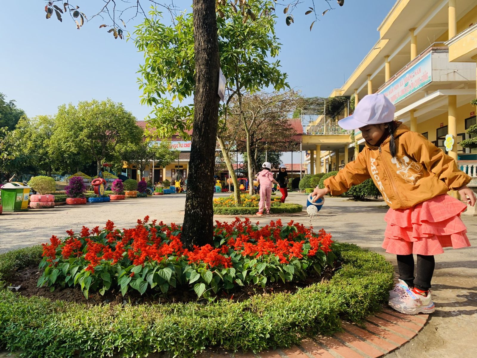 Hoạt động trải nghiệm – khám phá môi trường quanh bé: Các bé được nhiều hoạt động trải nghiệm phong phú như chăm sóc vườn cây, tham quan các khu vực trong trường, chơi trò chơi dân gian và làm việc nhóm. Thông qua những hoạt động này, trẻ được rèn luyện kỹ năng sống, biết hợp tác, chia sẻ và hình thành ý thức quan tâm, trách nhiệm với môi trường xung quanh. Những trải nghiệm tuy giản dị nhưng giàu tính giáo dục đã giúp trẻ thêm yêu trường lớp, gắn bó với cô giáo và hiểu rõ hơn giá trị của sự chăm sóc, yêu thương mà các cô dành cho mình mỗi ngày.