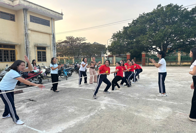 – Các hoạt động thể thao – giao lưu, rèn luyện sức khỏe cho tập thể giáo viên: Hưởng ứng phong trào thi đua lập thành tích chào mừng 20/11, các cô giáo của trường đã nhiệt tình tham gia nhiều hoạt động thể thao như: kéo co, đánh cầu lông,… Các hoạt động không chỉ tạo cơ hội cho giáo viên rèn luyện sức khỏe, giải tỏa căng thẳng sau giờ lên lớp mà còn tăng cường tinh thần đoàn kết, gắn bó giữa các thành viên trong nhà trường. Không khí vui tươi, sôi nổi của các cuộc thi đã góp phần làm nên một mùa 20/11 tràn đầy năng lượng tích cực.