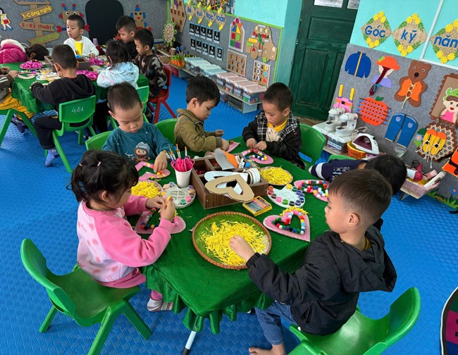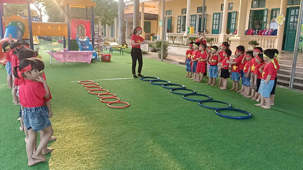 Hoạt động trải nghiệm – khám phá môi trường quanh bé: Các bé được nhiều hoạt động trải nghiệm phong phú như chăm sóc vườn cây, tham quan các khu vực trong trường, chơi trò chơi dân gian và làm việc nhóm. Thông qua những hoạt động này, trẻ được rèn luyện kỹ năng sống, biết hợp tác, chia sẻ và hình thành ý thức quan tâm, trách nhiệm với môi trường xung quanh. Những trải nghiệm tuy giản dị nhưng giàu tính giáo dục đã giúp trẻ thêm yêu trường lớp, gắn bó với cô giáo và hiểu rõ hơn giá trị của sự chăm sóc, yêu thương mà các cô dành cho mình mỗi ngày.