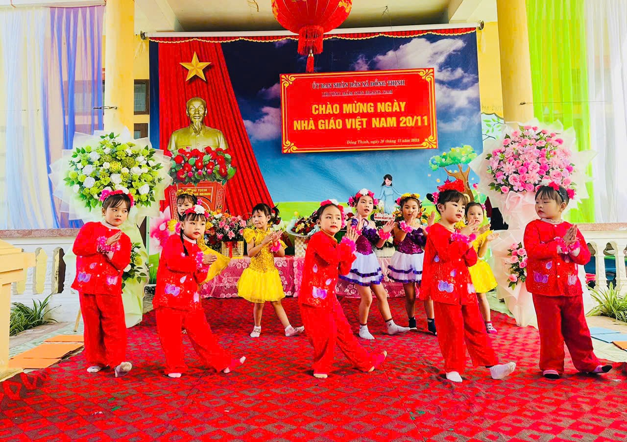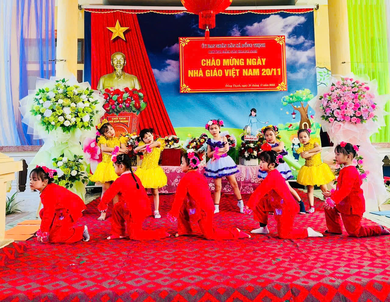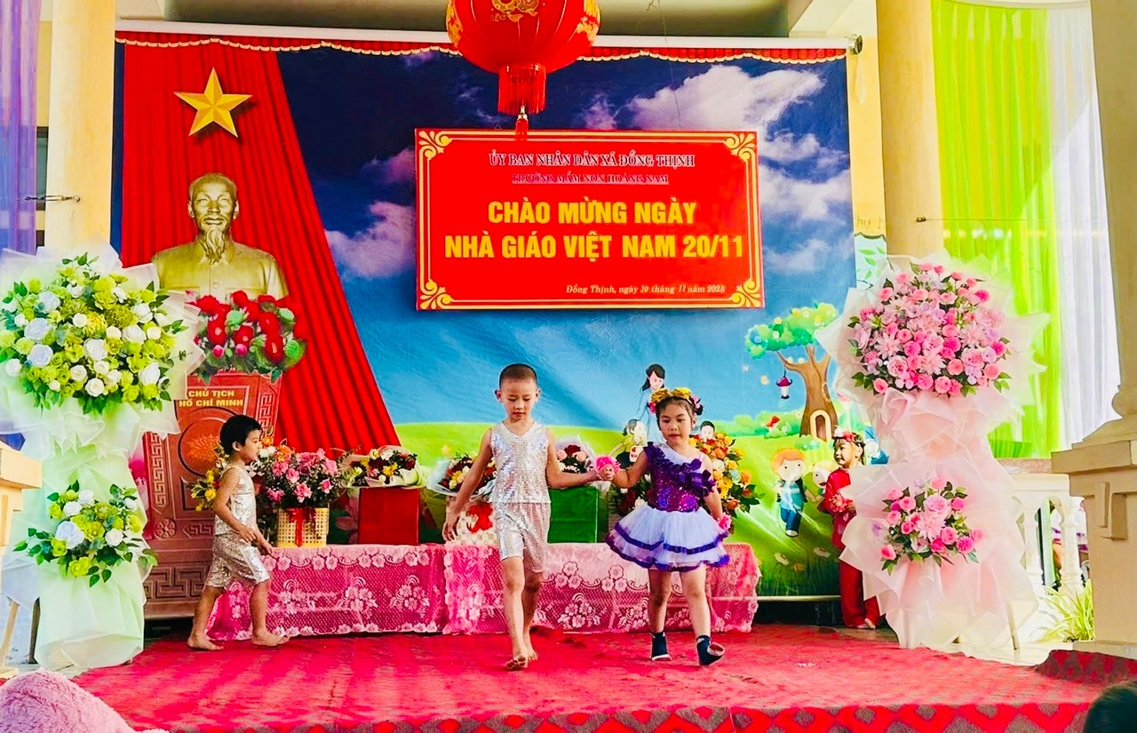 Các tiết mục văn nghệ được tổ chức sôi nổi với những bài hát về thầy cô, mái trường và bạn bè. Những giai điệu rộn ràng, tiếng hát trong trẻo và những điệu múa đáng yêu của các bé đã mang đến một không gian ấm áp, giàu cảm xúc. Mỗi tiết mục đều thể hiện sự nỗ lực, tinh thần mạnh dạn và niềm vui của trẻ khi được đứng trên sân khấu, đồng thời là món quà tinh thần đầy ý nghĩa gửi tặng các cô giáo nhân ngày đặc biệt này.