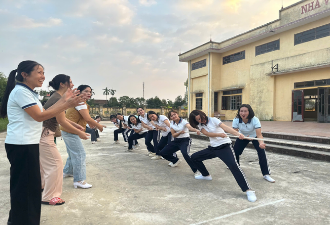 – Các hoạt động thể thao – giao lưu, rèn luyện sức khỏe cho tập thể giáo viên: Hưởng ứng phong trào thi đua lập thành tích chào mừng 20/11, các cô giáo của trường đã nhiệt tình tham gia nhiều hoạt động thể thao như: kéo co, đánh cầu lông,… Các hoạt động không chỉ tạo cơ hội cho giáo viên rèn luyện sức khỏe, giải tỏa căng thẳng sau giờ lên lớp mà còn tăng cường tinh thần đoàn kết, gắn bó giữa các thành viên trong nhà trường. Không khí vui tươi, sôi nổi của các cuộc thi đã góp phần làm nên một mùa 20/11 tràn đầy năng lượng tích cực.