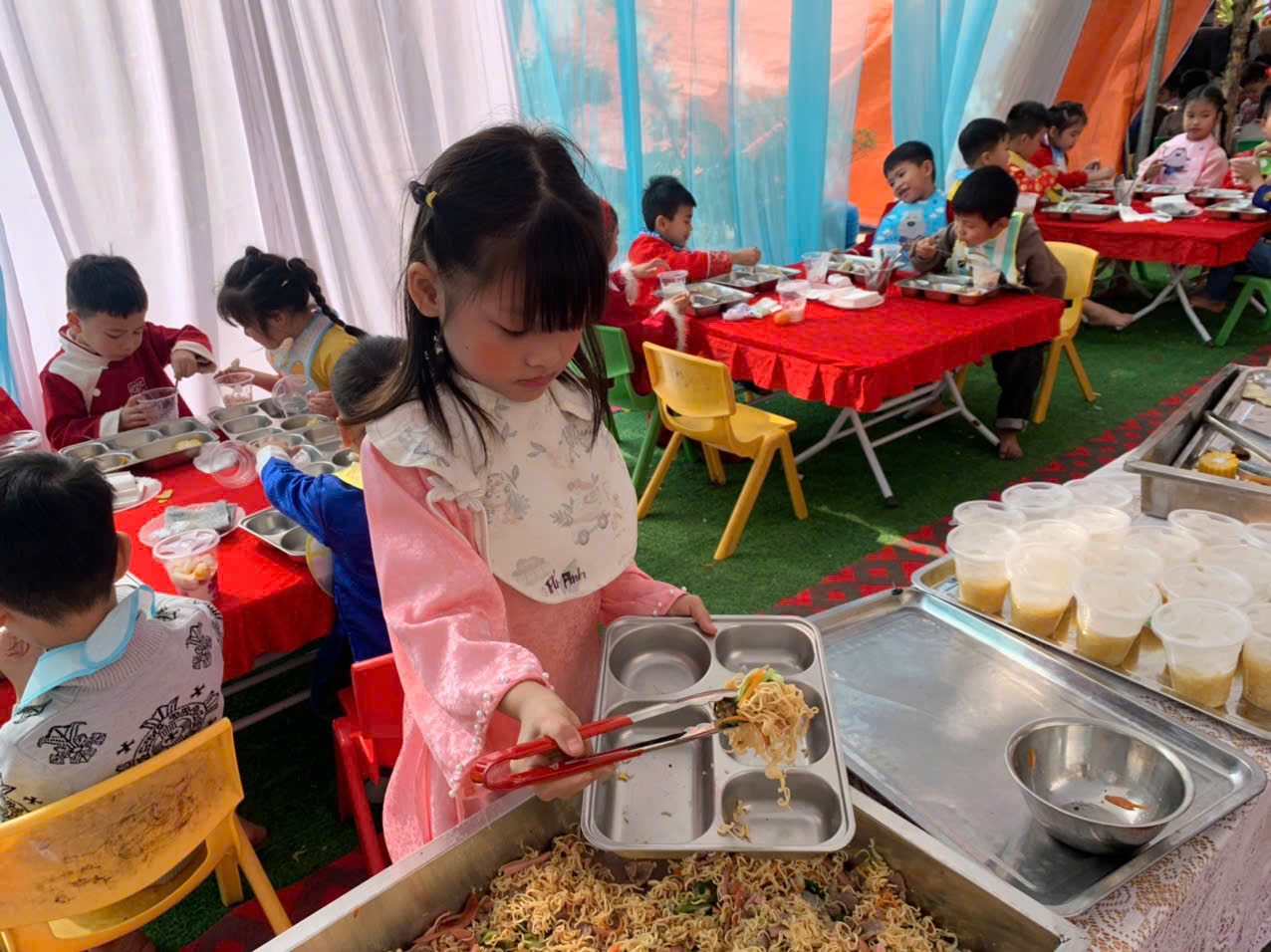 Hành trình trải nghiệm tiếp nối sang ngày thứ hai với một không gian ẩm thực đặc sắc: Đại tiệc Buffet đón Xuân. Các cô giáo đã khéo léo chuẩn bị một thực đơn phong phú, là sự giao thoa hoàn hảo giữa phong vị Tết cổ truyền và những món ăn hiện đại mà các bé yêu thích.