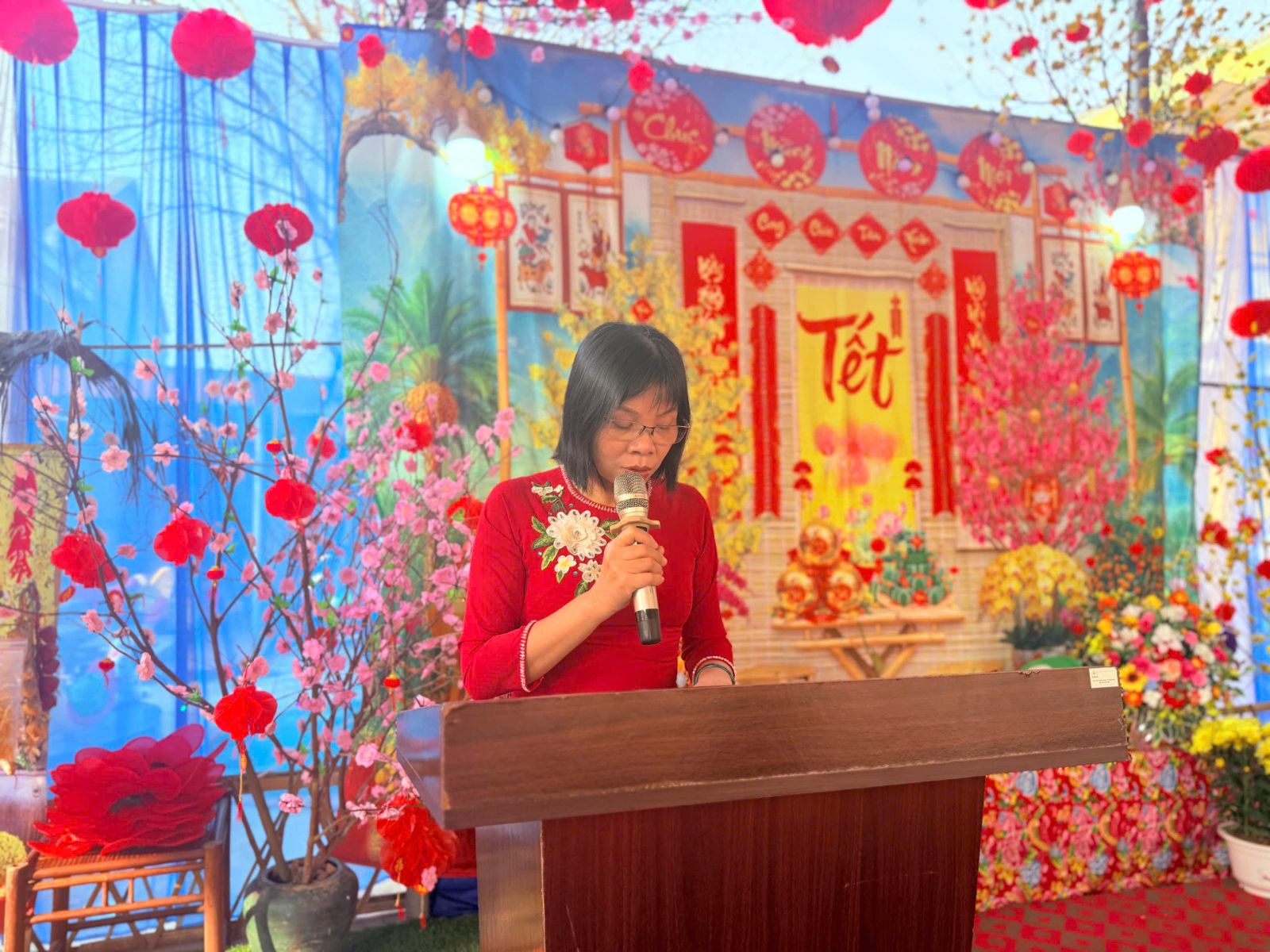 Ngay sau những tiết mục văn nghệ rộn ràng, không khí sân trường trở nên lắng đọng và ấm áp hơn với phần Khai mạc chương trình. Thay mặt cho nhà trường, cô Hiệu trưởng đã có những lời chia sẻ đầy tâm huyết, chính thức mở màn cho ngày hội và gửi gắm đến các con thông điệp ý nghĩa về nét đẹp của ngày Tết đoàn viên.