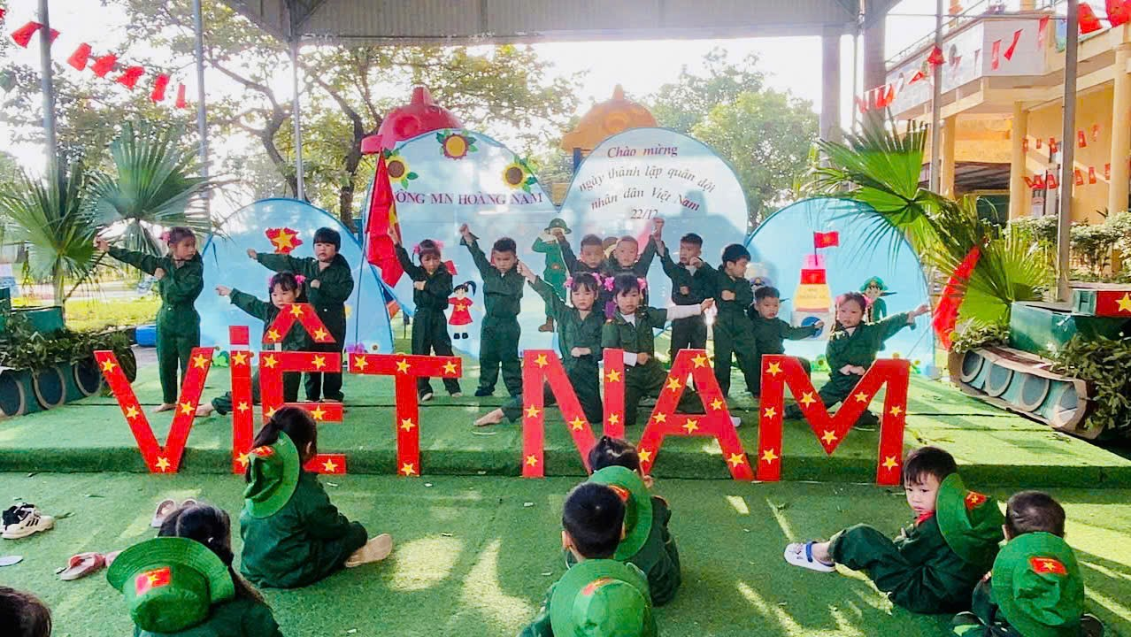 Thực hiện kế hoạch năm học và nhằm giáo dục truyền thống yêu nước, lòng biết ơn đối với các thế hệ cha anh cho trẻ mầm non, nhân kỷ niệm Ngày thành lập Quân đội Nhân dân Việt Nam 22/12, Trường Mầm non Hoàng Nam đã tổ chức chuỗi hoạt động trải nghiệm ý nghĩa, thiết thực và giàu tính giáo dục dành cho trẻ trong toàn trường.