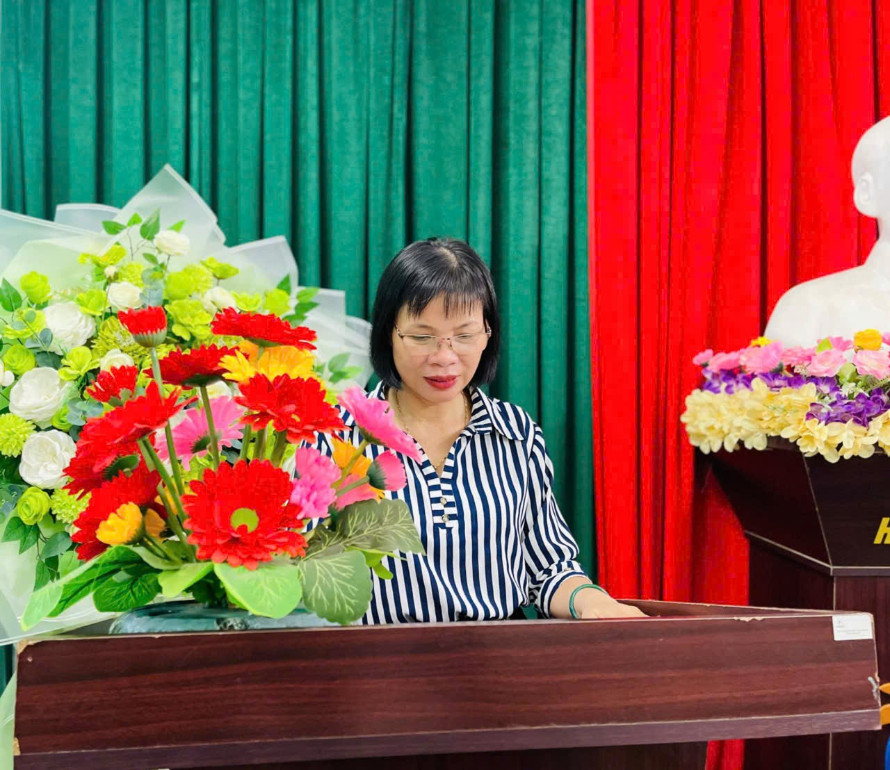 Đồng chí Bùi Thị Huyền – Trưởng Ban Thanh tra nhân dân báo cáo kết quả hoạt động năm học 2024 – 2025 và phương hướng nhiệm vụ năm học mới.