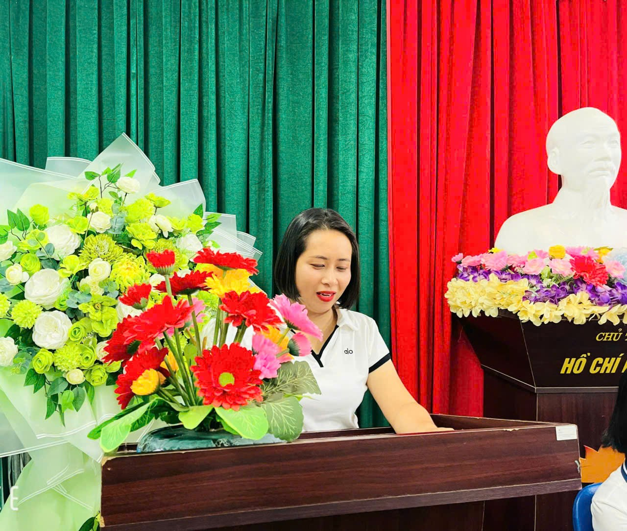 Hình ảnh tham luận về đổi mới phương pháp, nâng cao năng lực số, năng lực về chuyên môn, gắn kết gia đình – nhà trường – xã hội và xây dựng môi trường học đường Xanh- Sạch – Đẹp- An toàn đã góp phần hoàn thiện kế hoạch phát triển năm học 2025 – 2026.